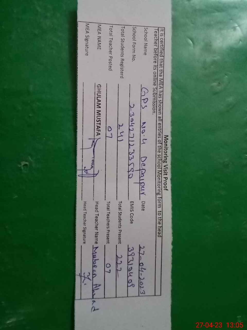 | EMIS Code: 39310409 | Name of School: GPS NO.4 DEPALPUR | |||