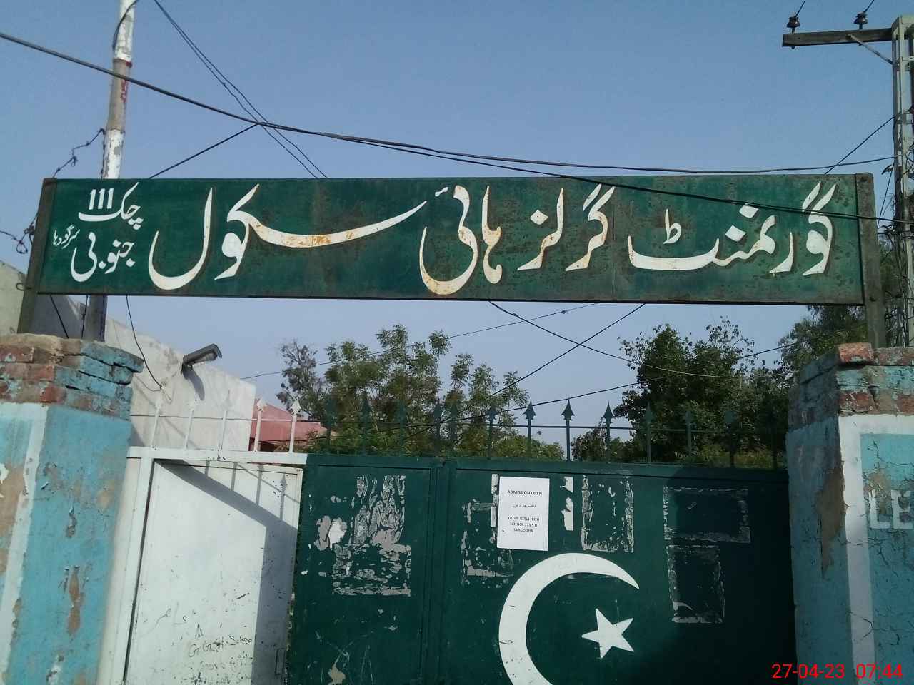 | EMIS Code: 38420144 | Name of School: GGHS CHAK NO.111 SB | |||