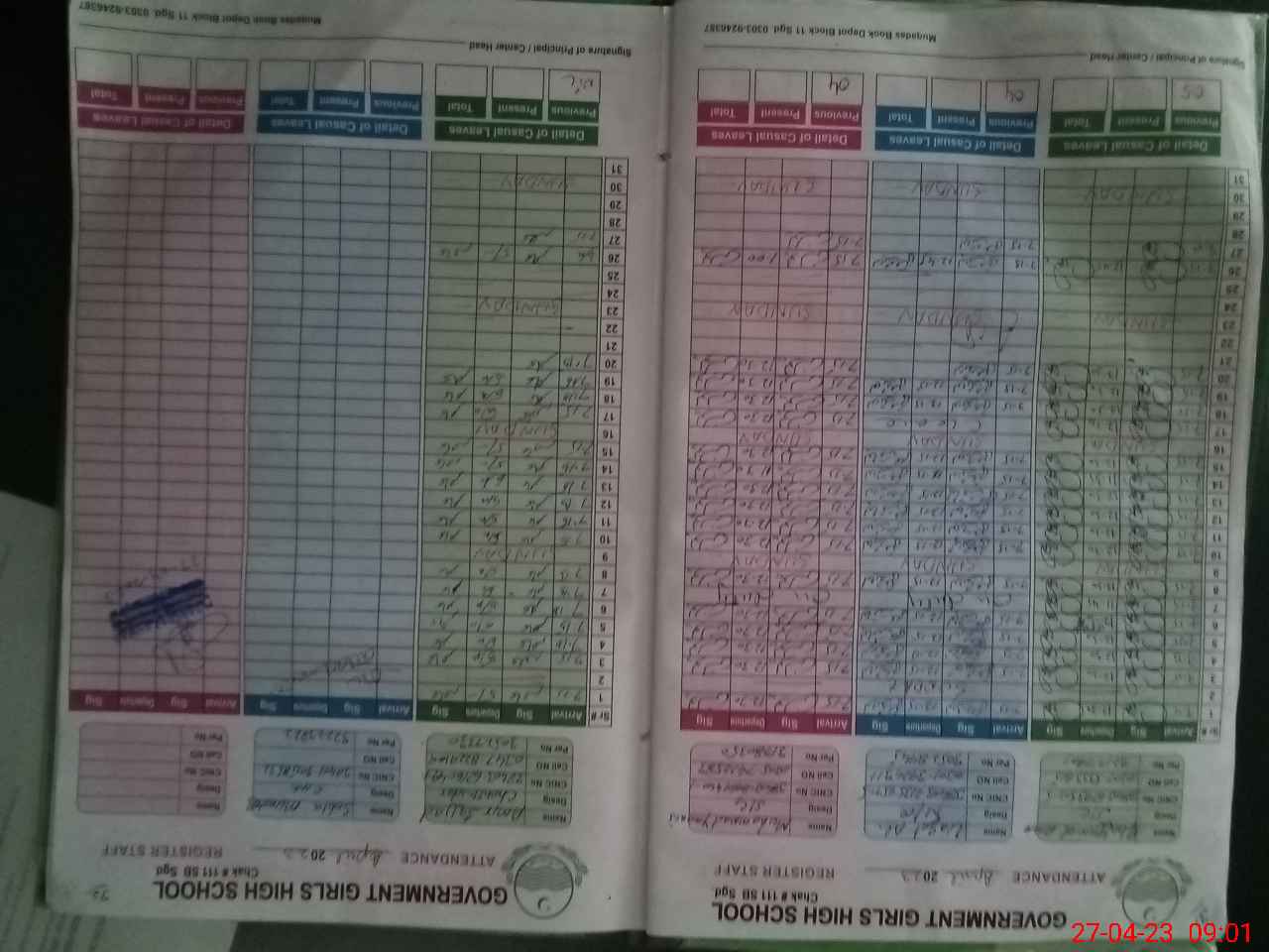 | CNIC | Full Name | Designation | R/C | Absence During Last Calender Month |