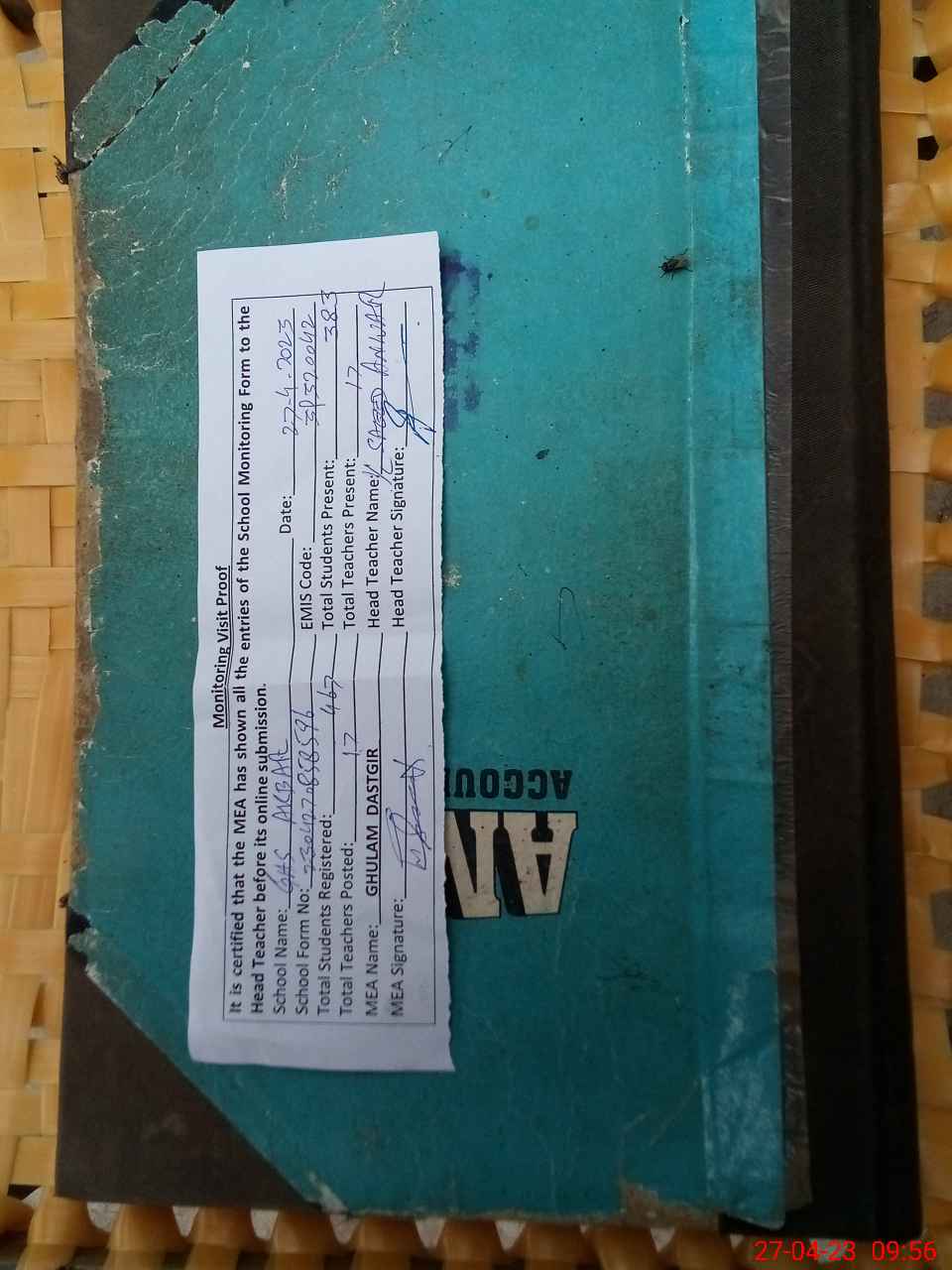| Attendance Register | Head Teacher | MEA with School | Visit Proof |