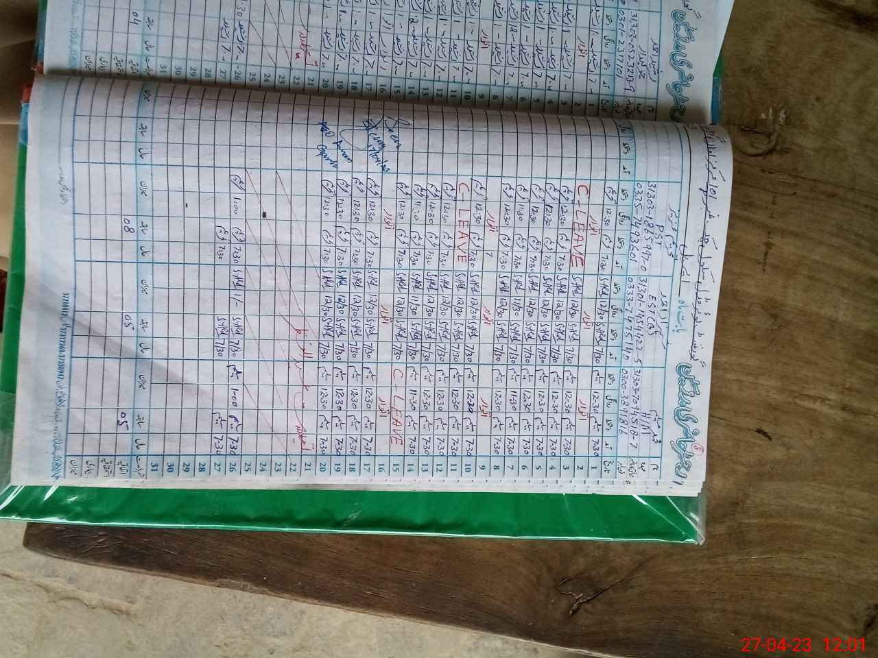 | CNIC | Full Name | Designation | R/C | Absence During Last Calender Month |