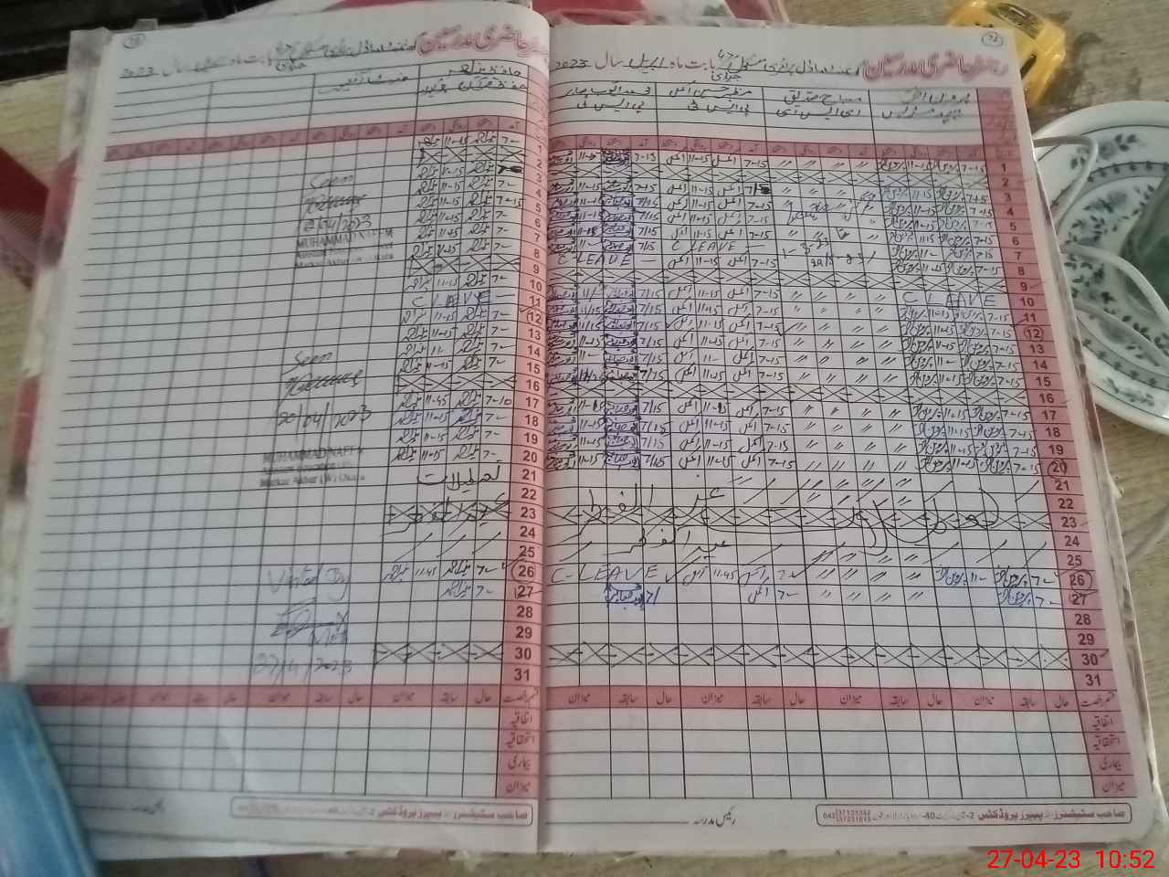 | CNIC | Full Name | Designation | R/C | Absence During Last Calender Month |