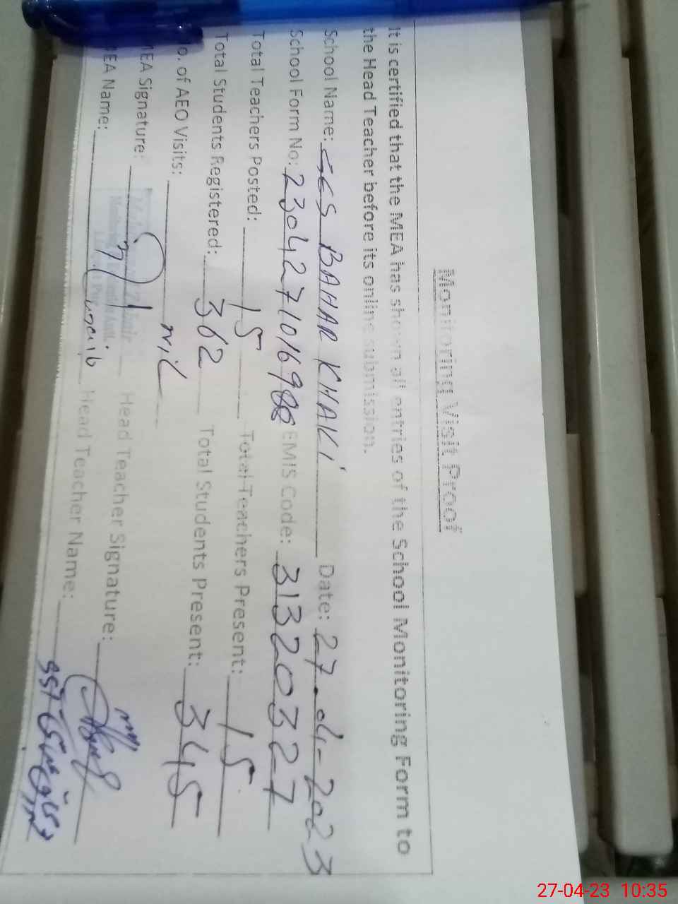| EMIS Code: 31320327 | Name of School: GES BAHAR KHAKHI | |||