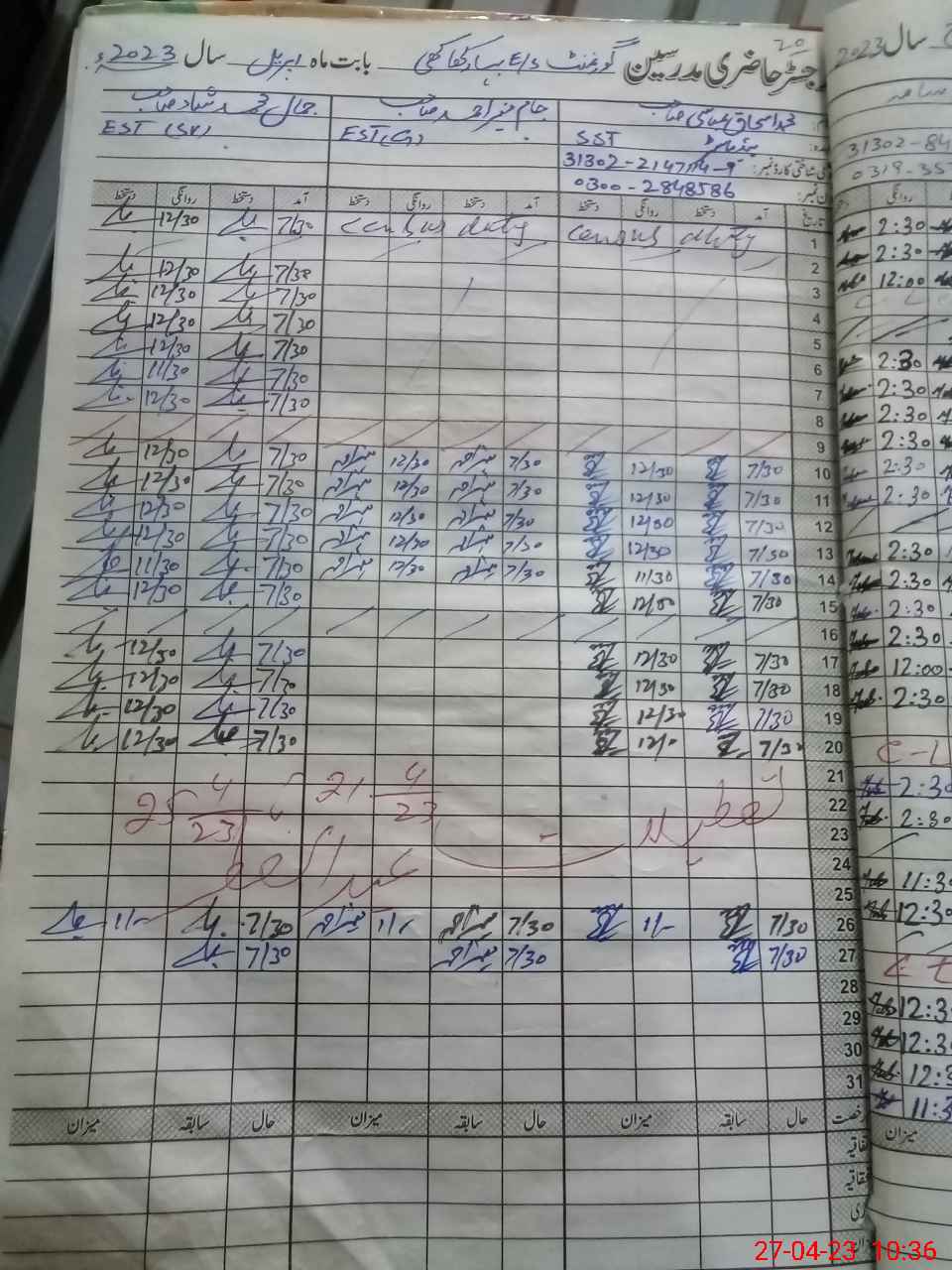 | 31**** | Ab**** Iq**** | PST | Regular | 0 | 0 | 0 | 0 | 0 | 0 | 0 | 0 | 0 | Exam Duty |