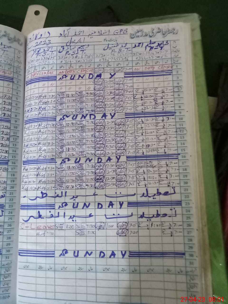 | CNIC | Full Name | Designation | R/C | Absence During Last Calender Month |