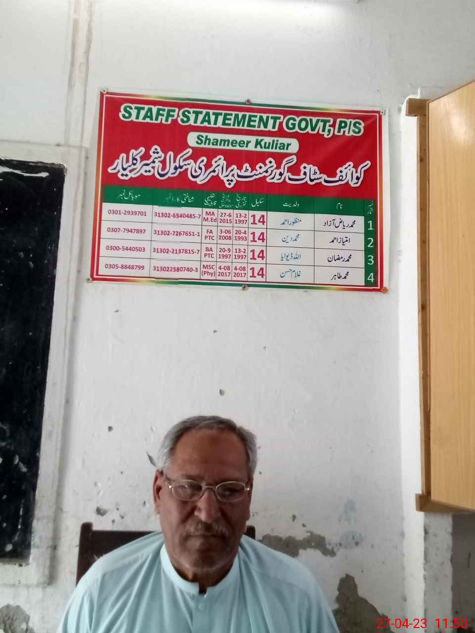 | Name: Mu**** Rm**** Designation: (School Headmaster's/Headmistress's) PST/PTC/JV Phone/Cell Number: 03**** |