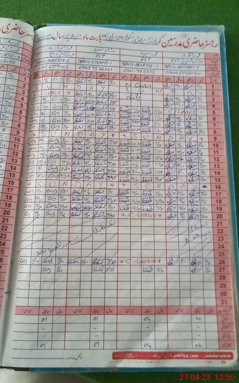 | Name: MU**** AH**** Designation: (School Headmaster's/Headmistress's) PST Phone/Cell Number: 03**** |
