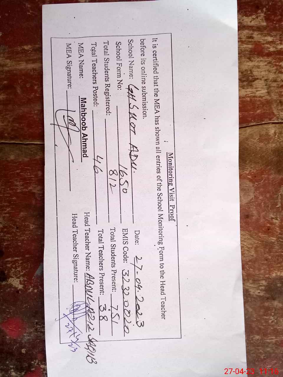 | EMIS Code: 32320020 | Name of School: GHS KOT ADU | |||