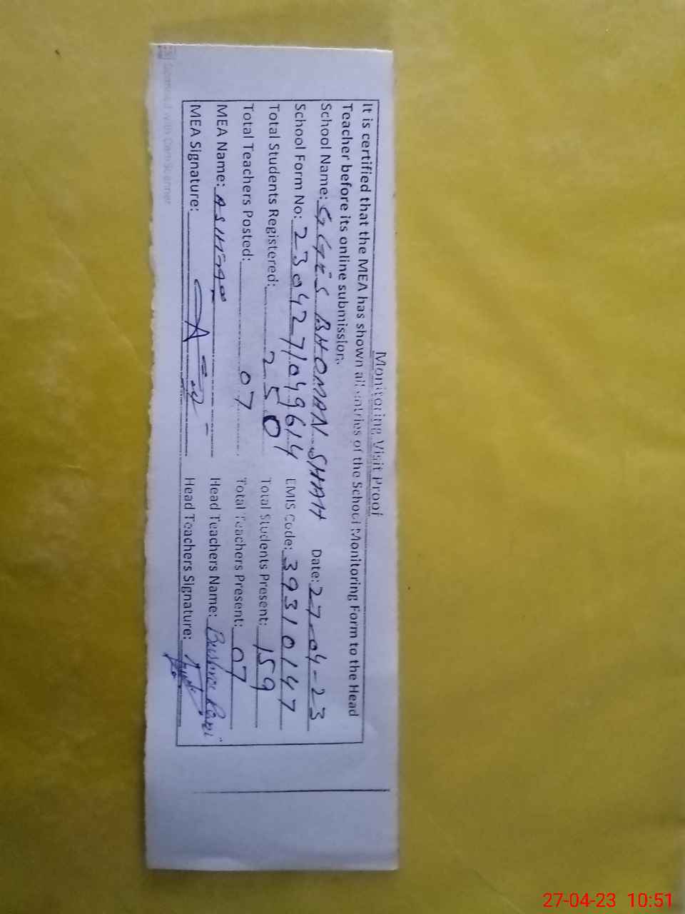 | Name: BU**** RA**** Designation: (School Headmaster's/Headmistress's) S.S.T.(Seco Phone/Cell Number: 03**** |