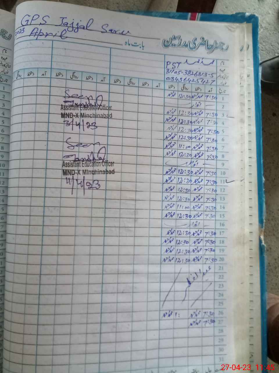 | Name: MU**** AH**** Designation: (School Headmaster's/Headmistress's) PST Phone/Cell Number: 03**** |