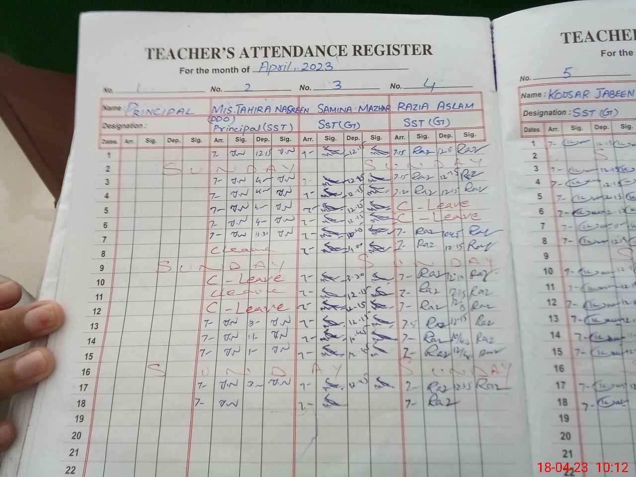| CNIC | Full Name | Designation | R/C | Absence During Last Calender Month |