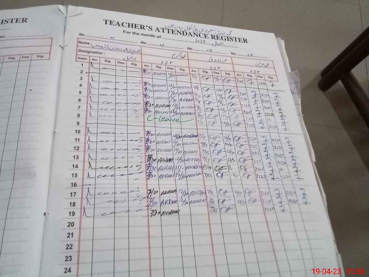 | CNIC | Full Name | Designation | R/C | Absence During Last Calender Month |