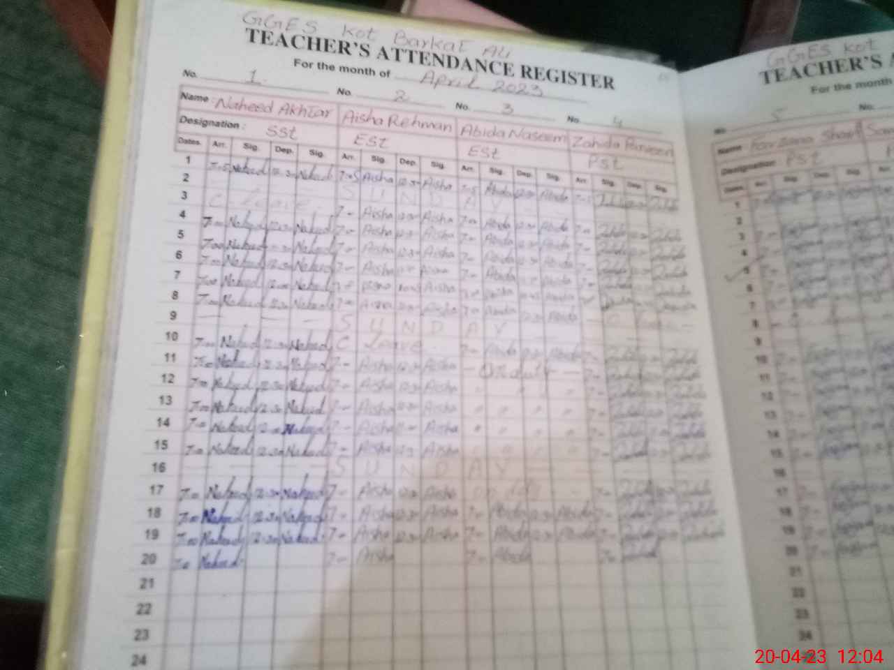 | CNIC | Full Name | Designation | R/C | Absence During Last Calender Month |