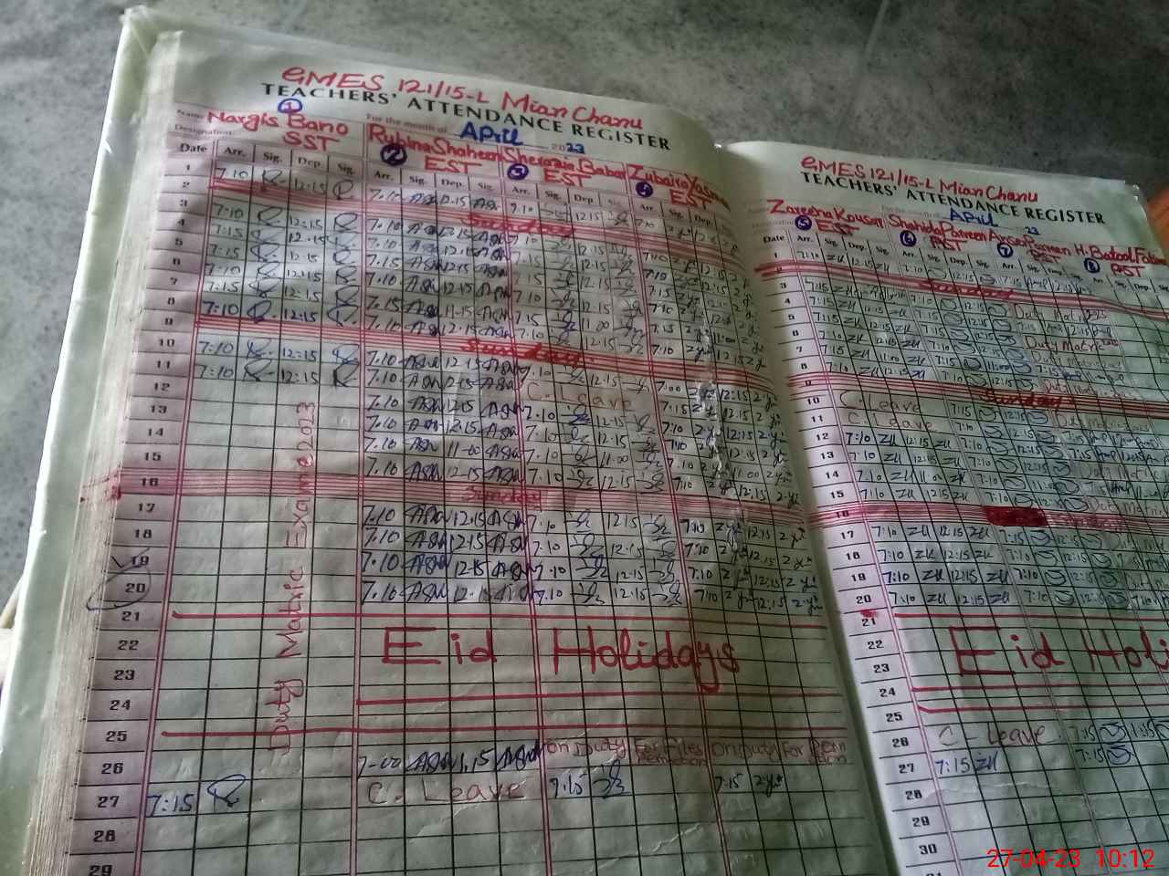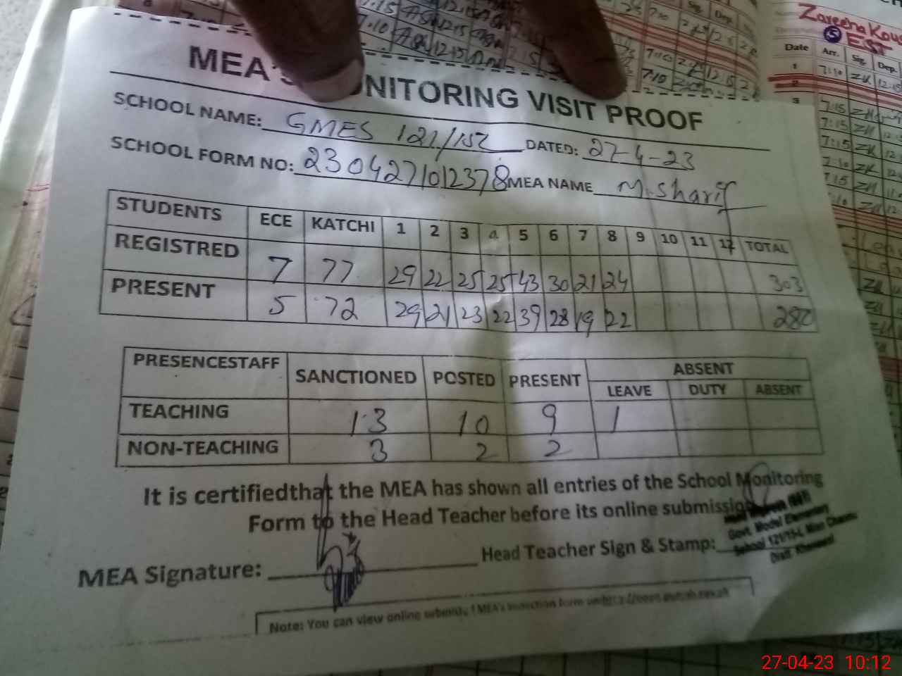 | Attendance Register | Head Teacher | MEA with School | Visit Proof |