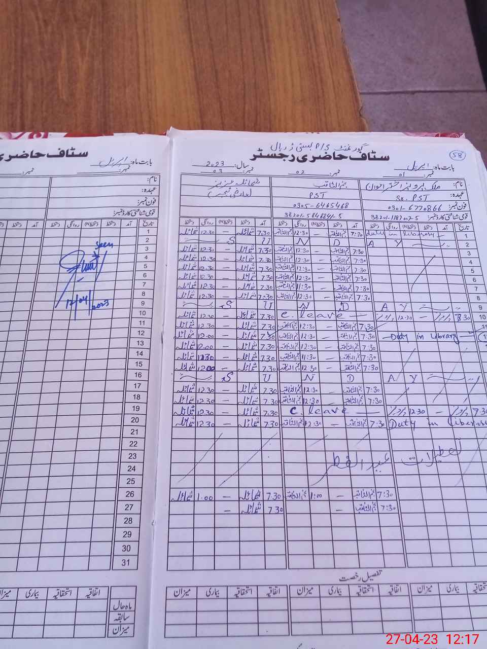 | Name: PE**** AK**** SH**** Designation: (School Headmaster's/Headmistress's) PST Phone/Cell Number: 03**** |