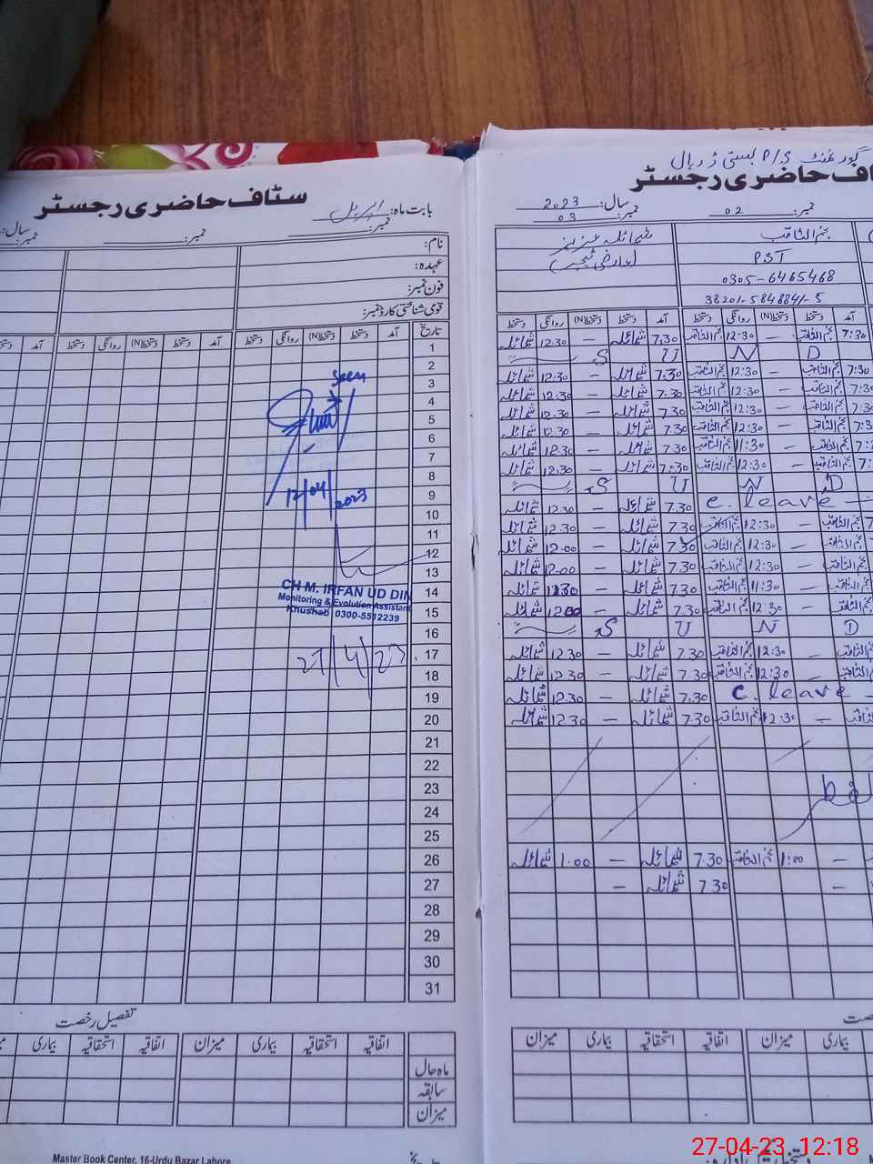 | CNIC | Full Name | Designation | R/C | Absence During Last Calender Month |