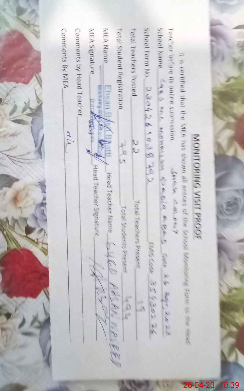 | EMIS Code: 35430276 | Name of School: GES MC MOHALLAH QADIR ABAD SHAH COLONY | |||