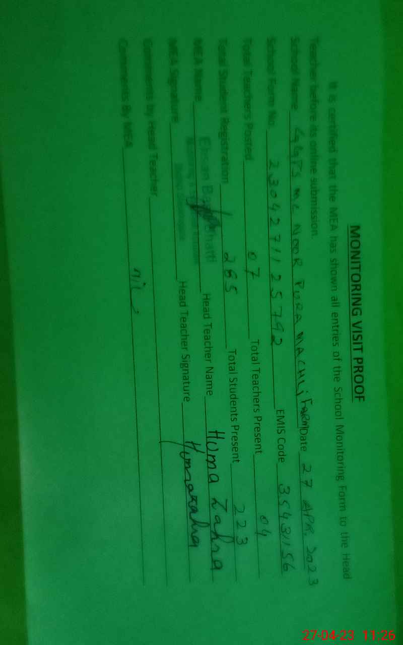 | EMIS Code: 35431156 | Name of School: GGPS MC NOOR PURA MACHLI FARM | |||