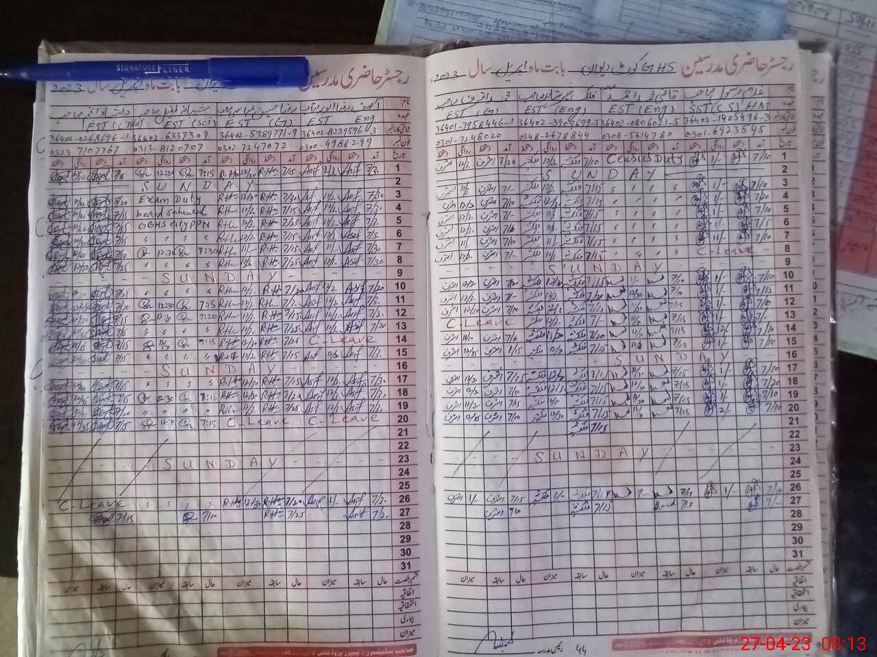 | CNIC | Full Name | Designation | R/C | Absence During Last Calender Month |