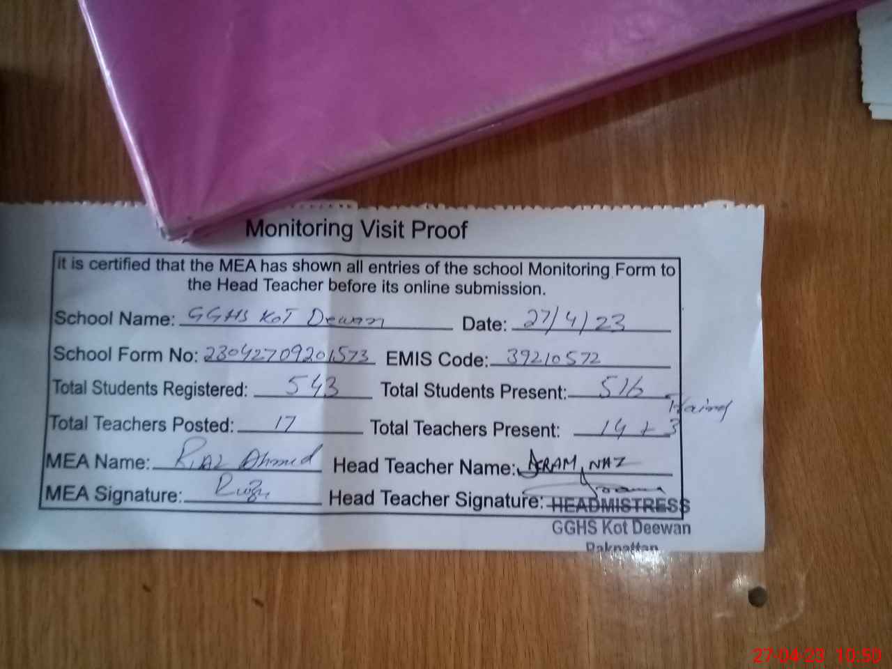 | EMIS Code: 39210572 | Name of School: GGHS KOT DEWAN | |||
