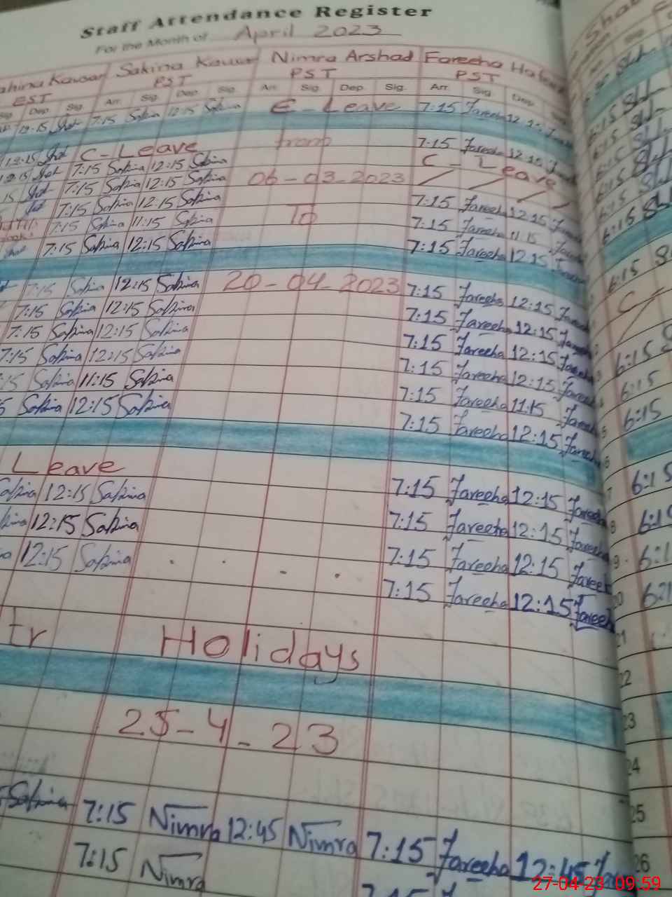 | Leave | Duty | Absent | Maternity | Medical | Ex- Pak |