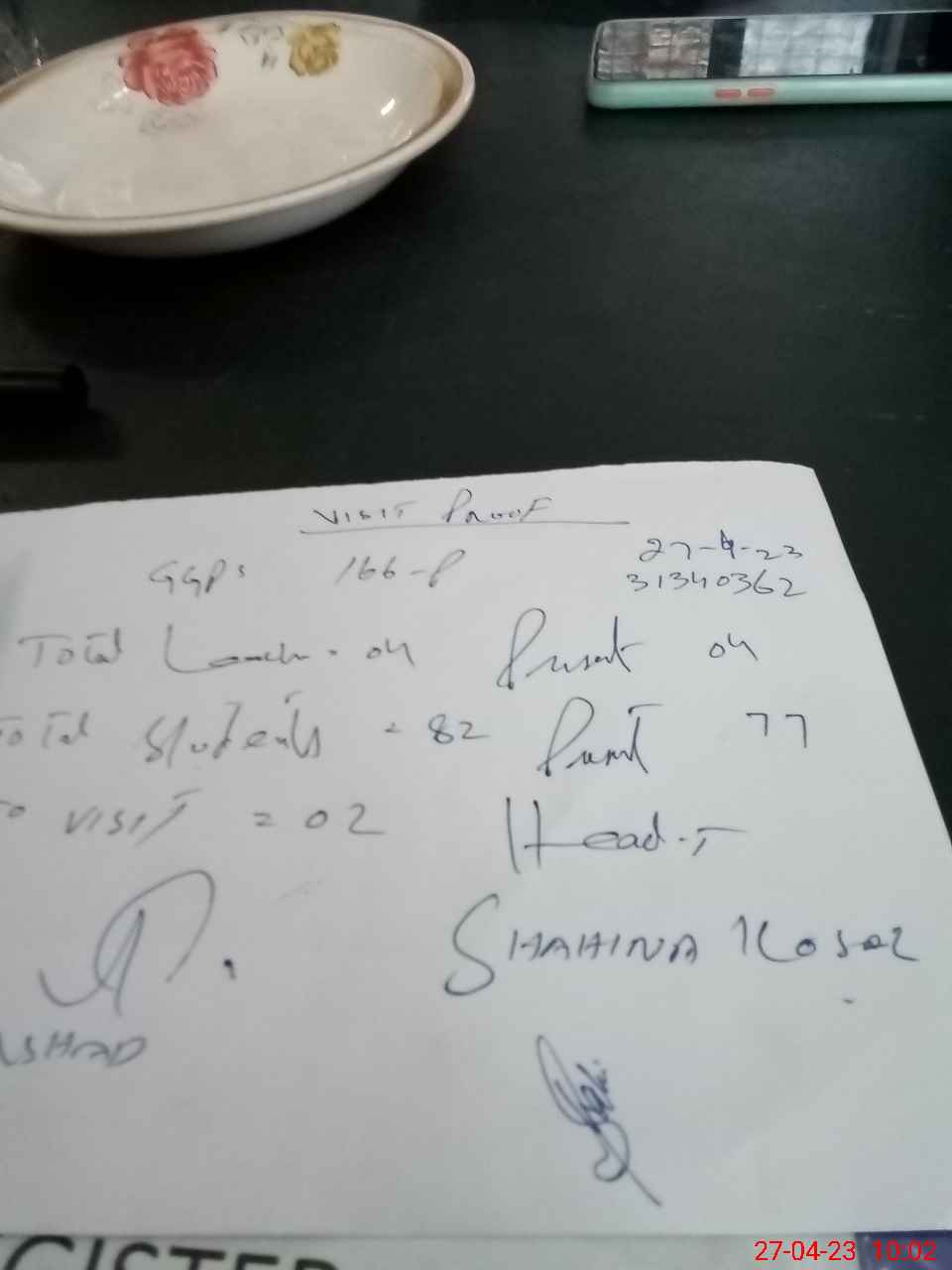 | Attendance Register | Head Teacher | MEA with School | Visit Proof |