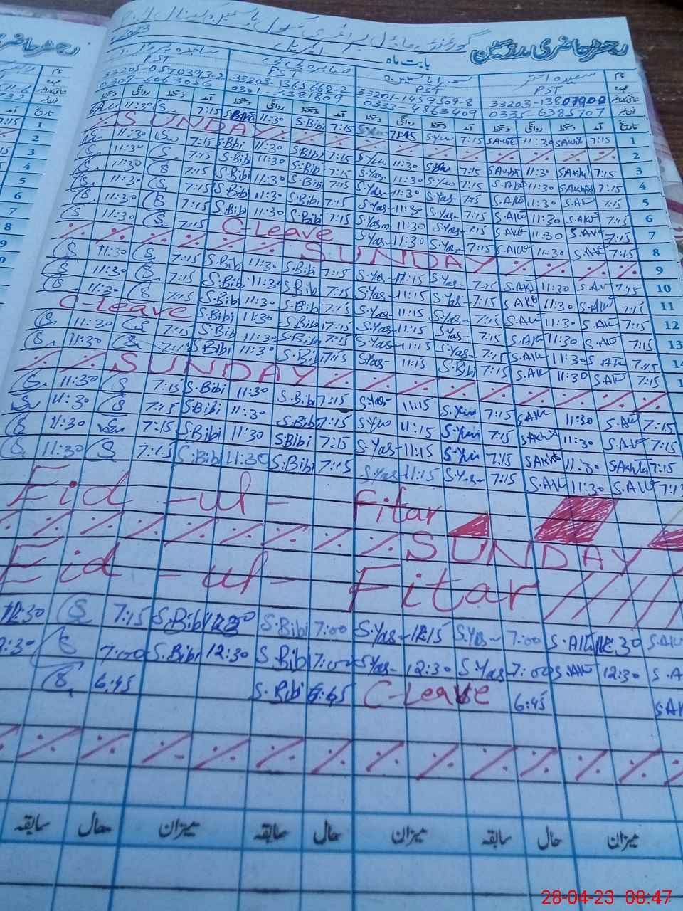 | CNIC | Full Name | Designation | R/C | Absence During Last Calender Month |