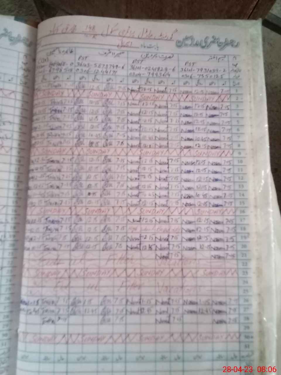 | CNIC | Full Name | Designation | R/C | Absence During Last Calender Month |