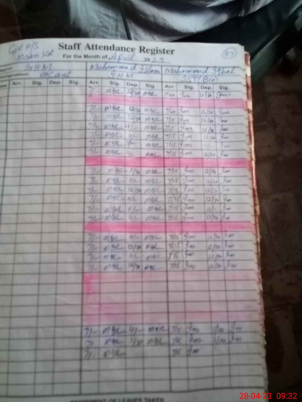 | Monitoring Date: 28-04-2023 | Start Time: 28-04-2023 09:00 AM | End Time: 28-04-2023 09:34 AM | Name of MEA: Sa**** Ah**** | |
