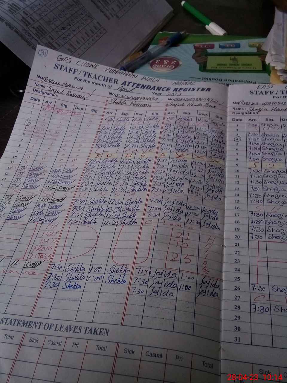 | Name: SA**** PE**** Designation: (School Headmaster's/Headmistress's) PST Phone/Cell Number: 03**** |