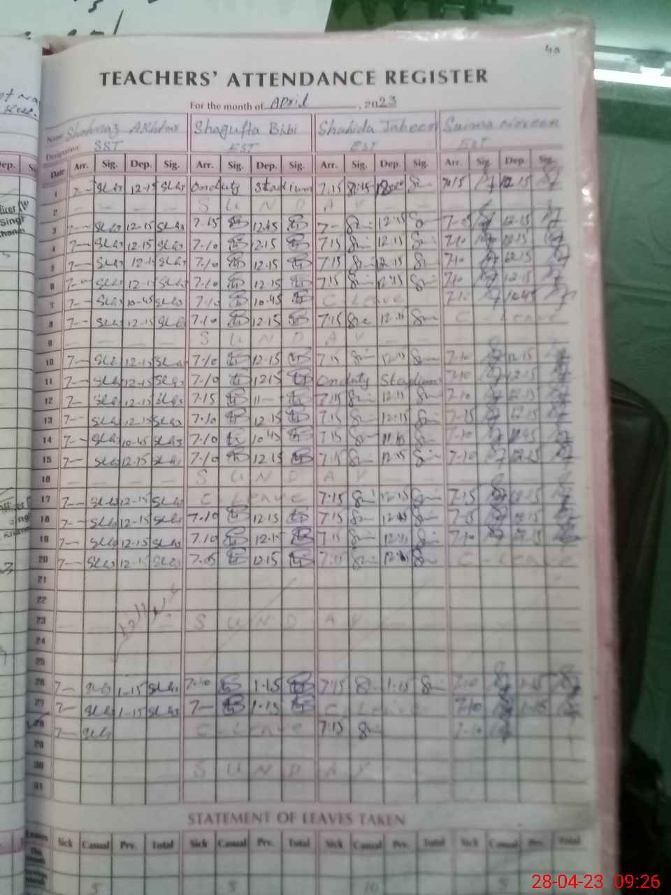 | Leave | Duty | Absent | Maternity | Medical | Ex- Pak |
