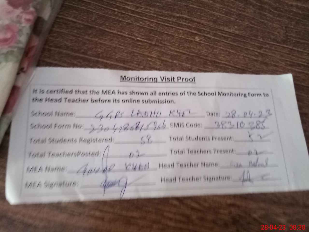 | EMIS Code: 38310385 | Name of School: GGPS LADHU KHEL | |||