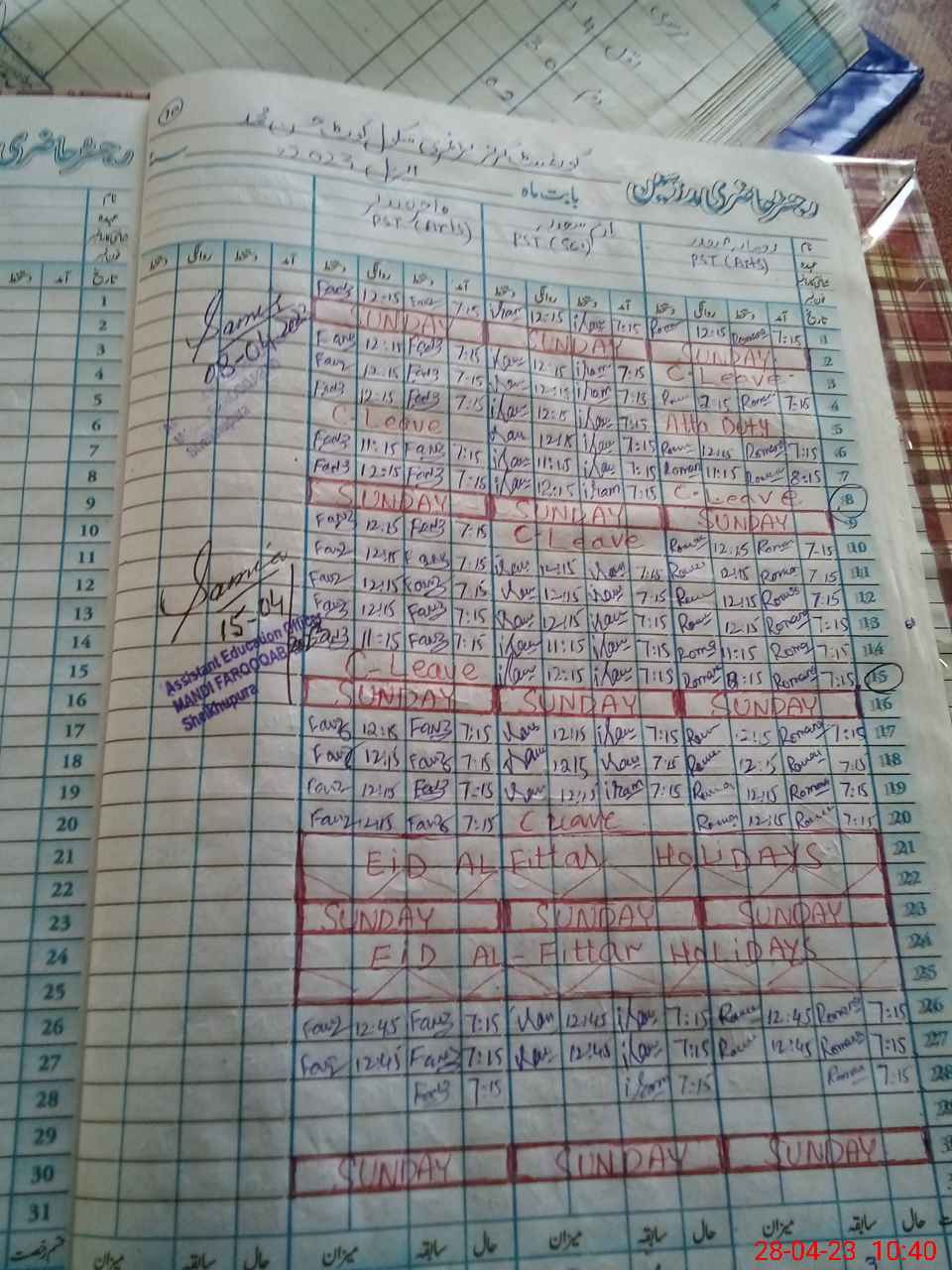 | Name: RO**** SA**** Designation: (School Headmaster's/Headmistress's) PST Phone/Cell Number: 03**** |