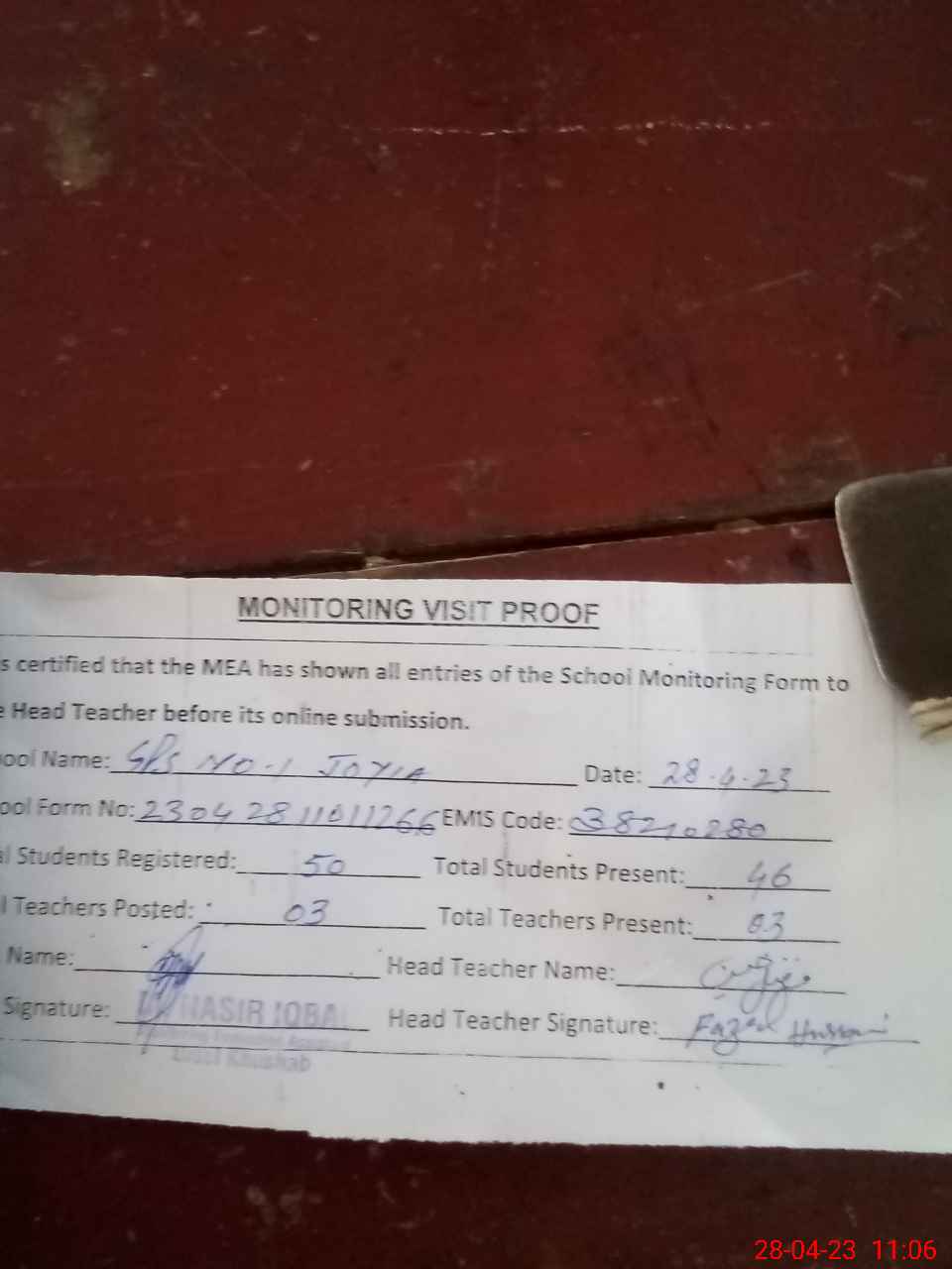 | EMIS Code: 38210280 | Name of School: GPS NO. 1 JOYIA | |||