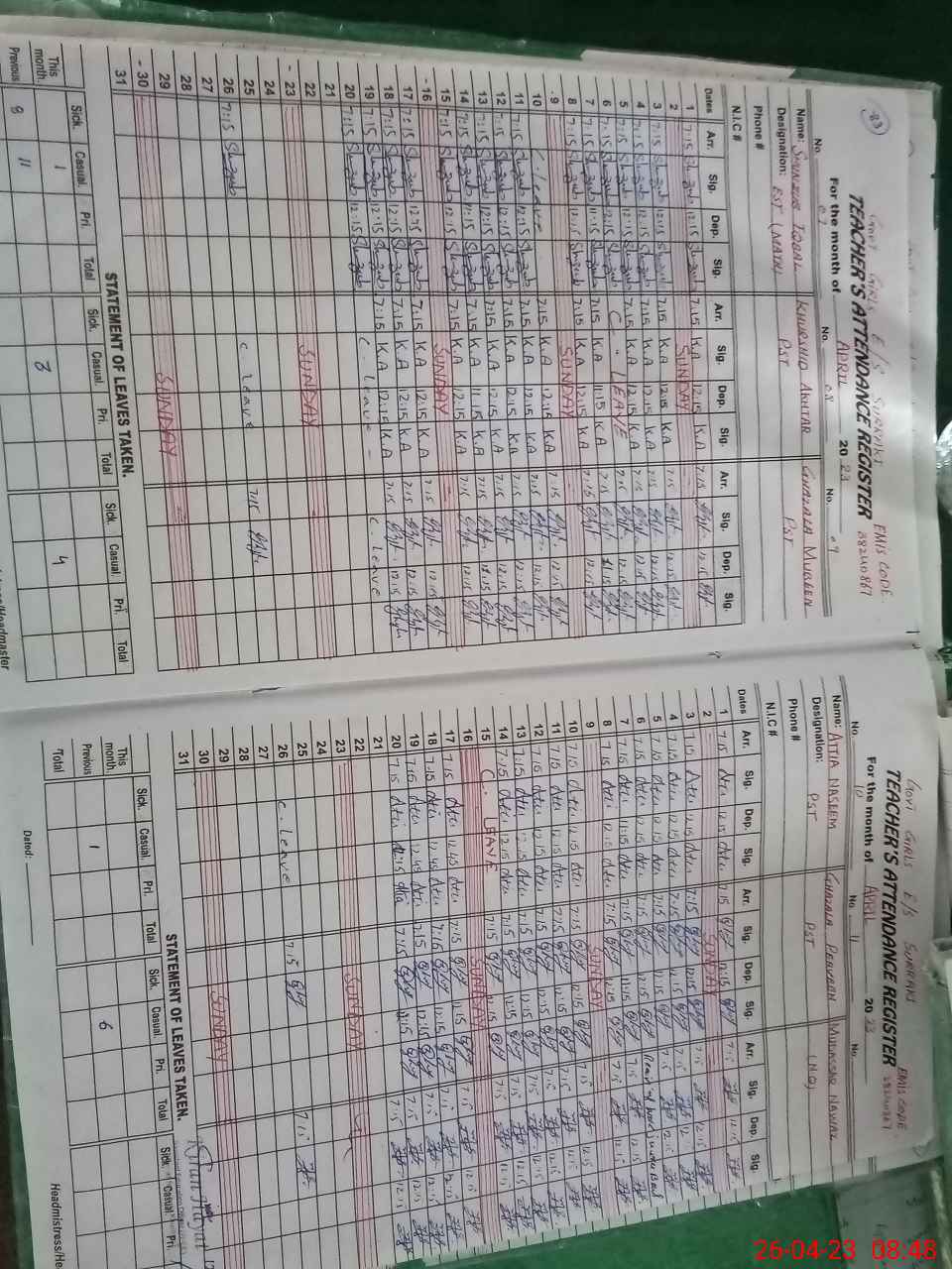 | 38**** | Ru**** Sh**** | EST(ENGLISH) | Temporary | 0 | 0 | 0 | 0 | 0 | 0 | 0 | 0 | 0 | Exam Duty |