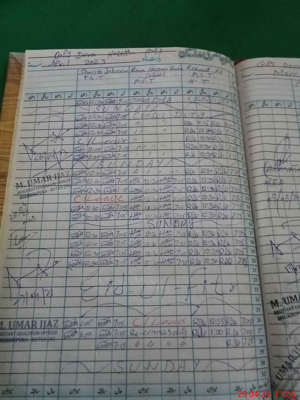 | CNIC | Full Name | Designation | R/C | Absence During Last Calender Month |