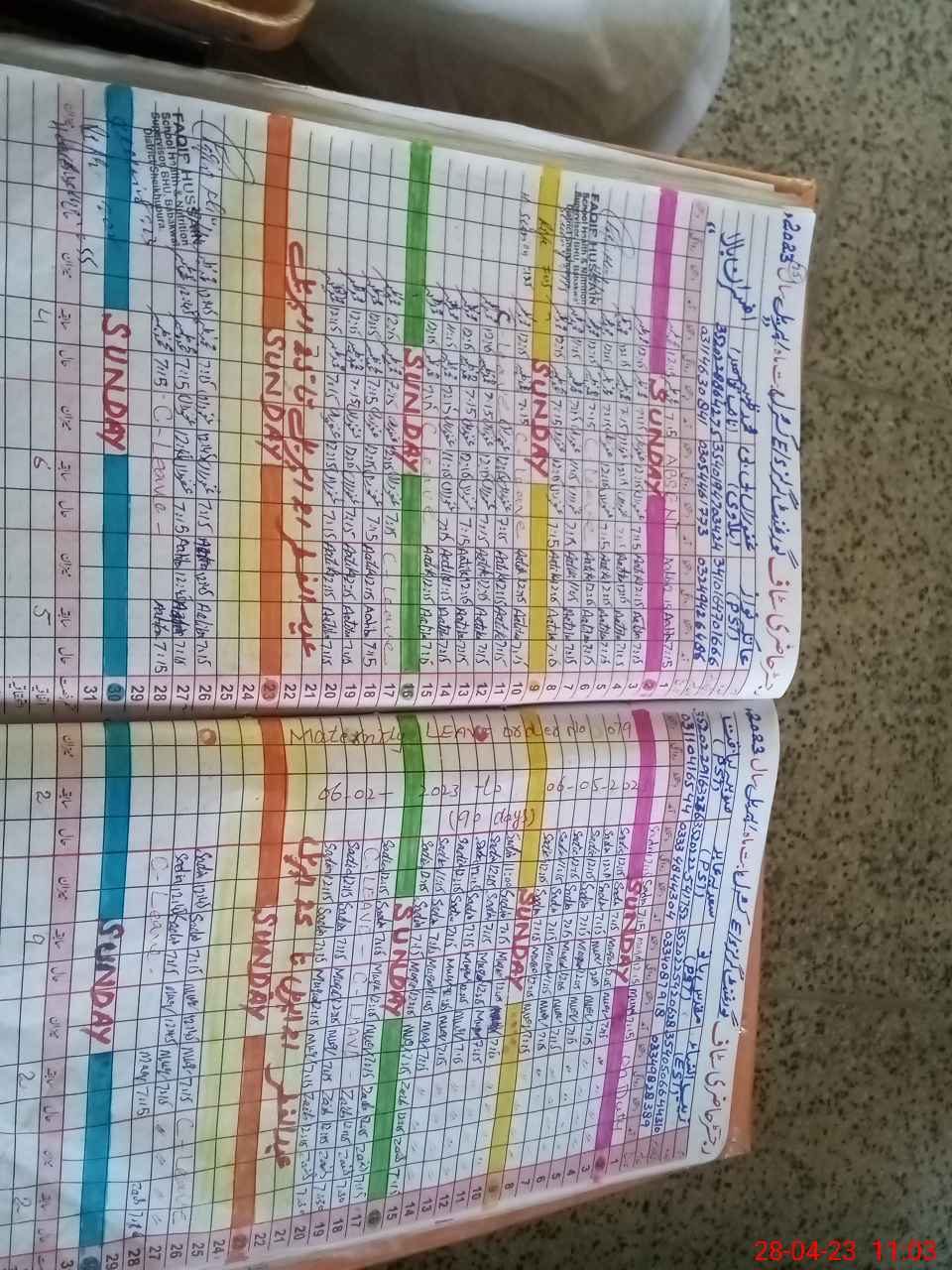 | Leave | Duty | Absent | Maternity | Medical | Ex- Pak |