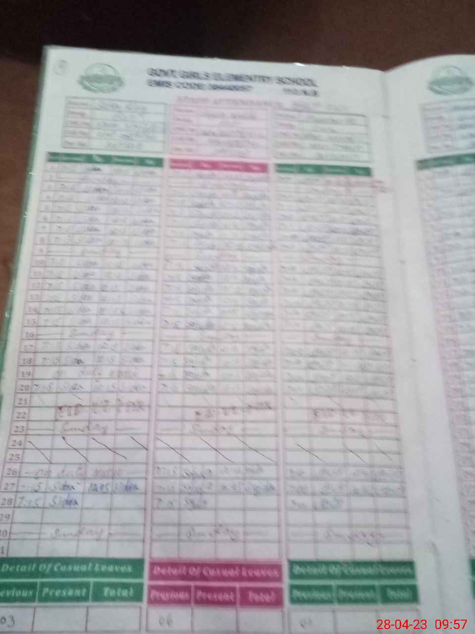 | No. of Students Present - Female | 3 | 0 | 12 | 12 | 10 | 11 | 13 | 19 | 20 | 14 | 17 | 131 | ||||