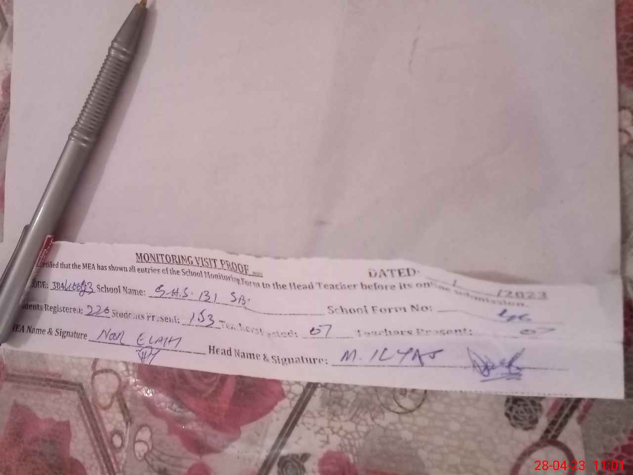 | Attendance Register | Head Teacher | MEA with School | Visit Proof |