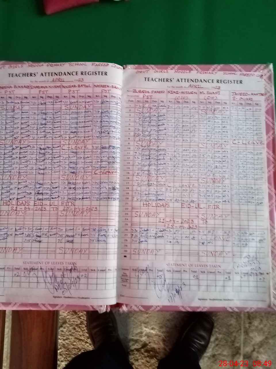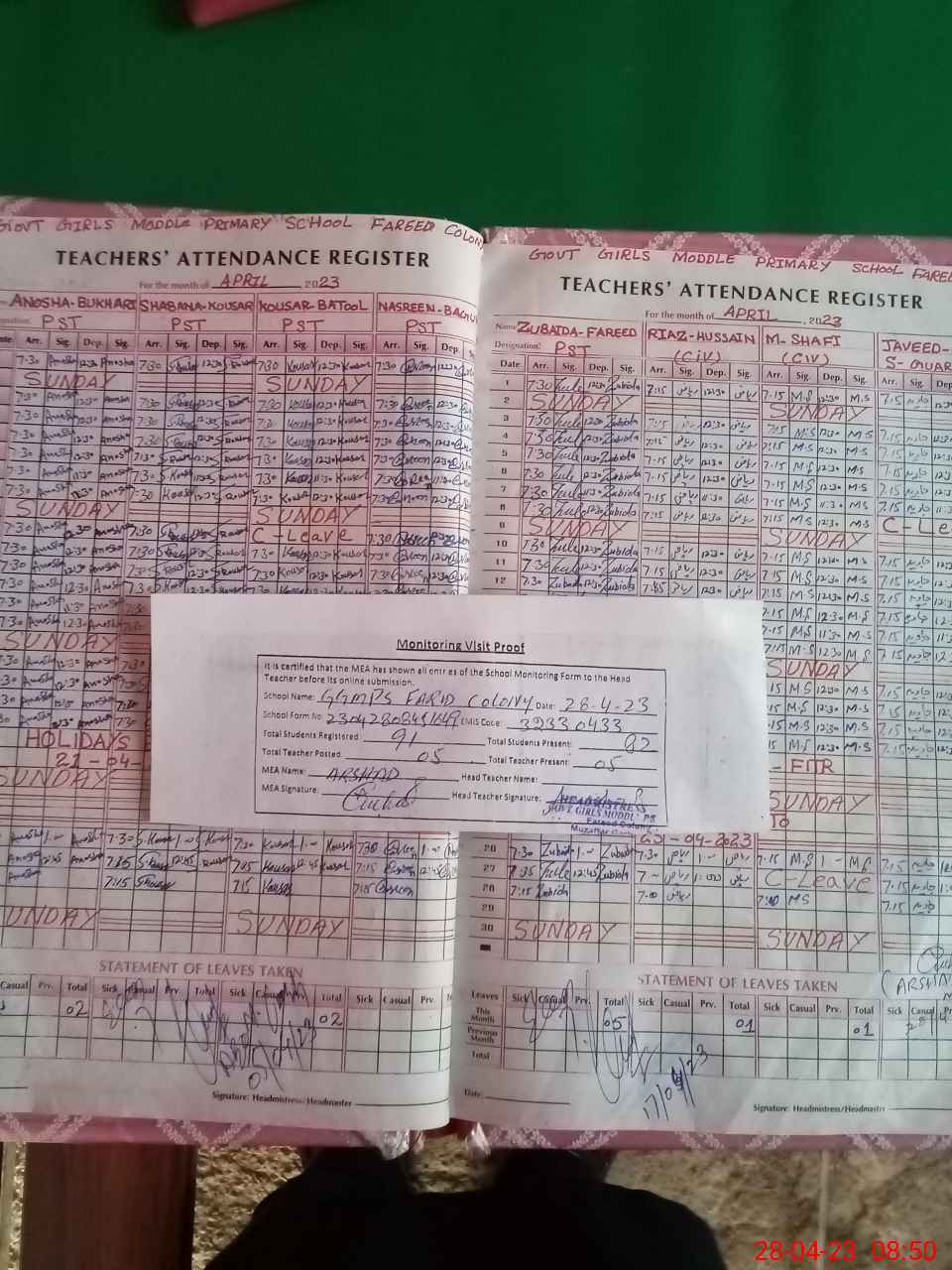 | Attendance Register | Head Teacher | MEA with School | Visit Proof |