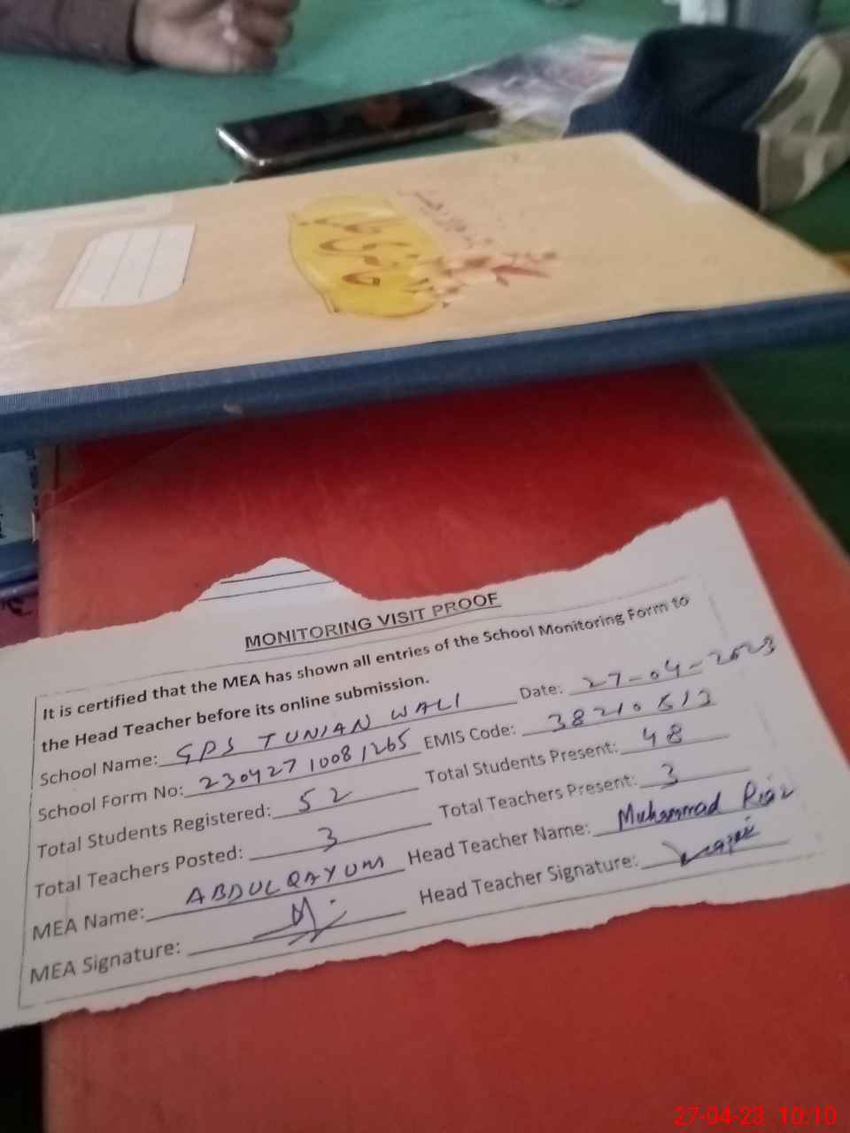 | EMIS Code: 38210513 | Name of School: GPS TUNNIAN WALI | |||