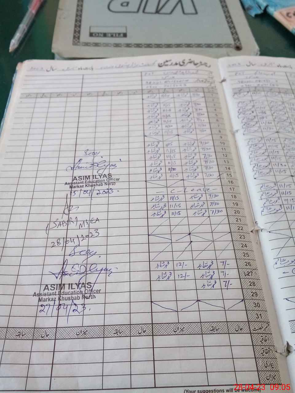 | District: KHUSHAB | Tehsil: KHUSHAB | Markaz: KHUSHAB (NORTH) (MALE) | Level: Primary | |