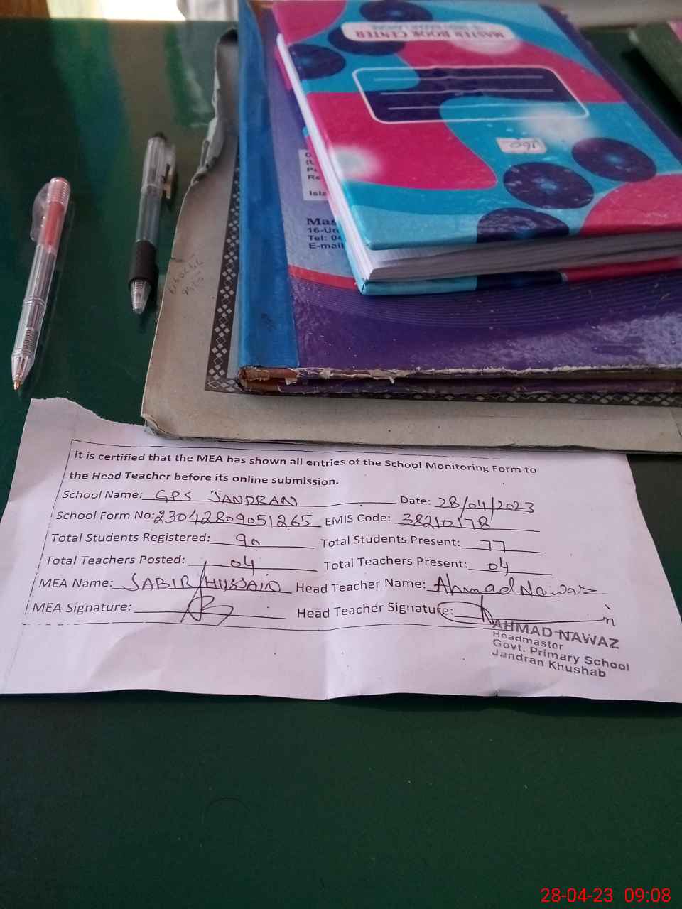| EMIS Code: 38210178 | Name of School: GPS JANDRAN | |||