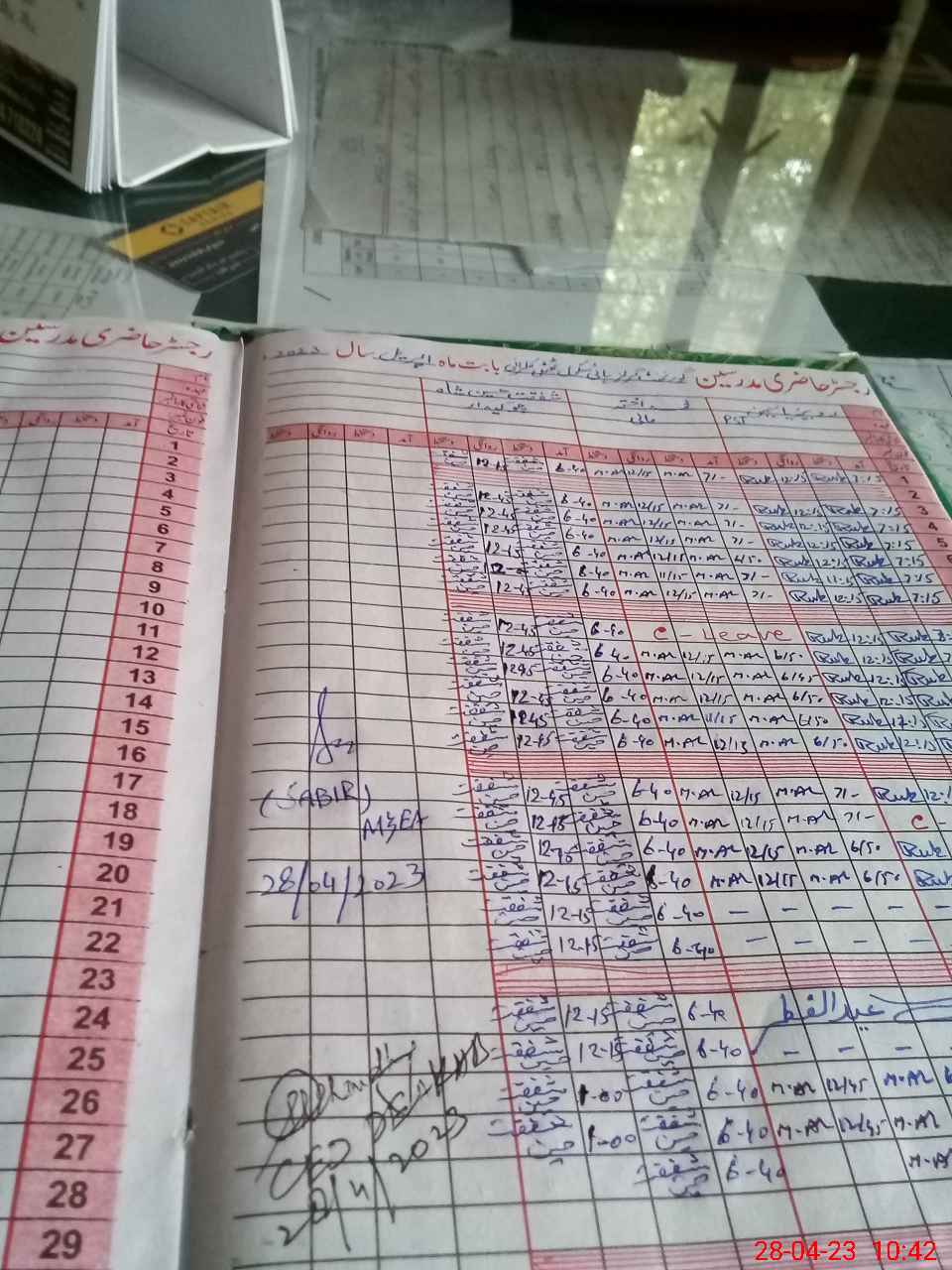 | CNIC | Full Name | Designation | R/C | Absence During Last Calender Month |