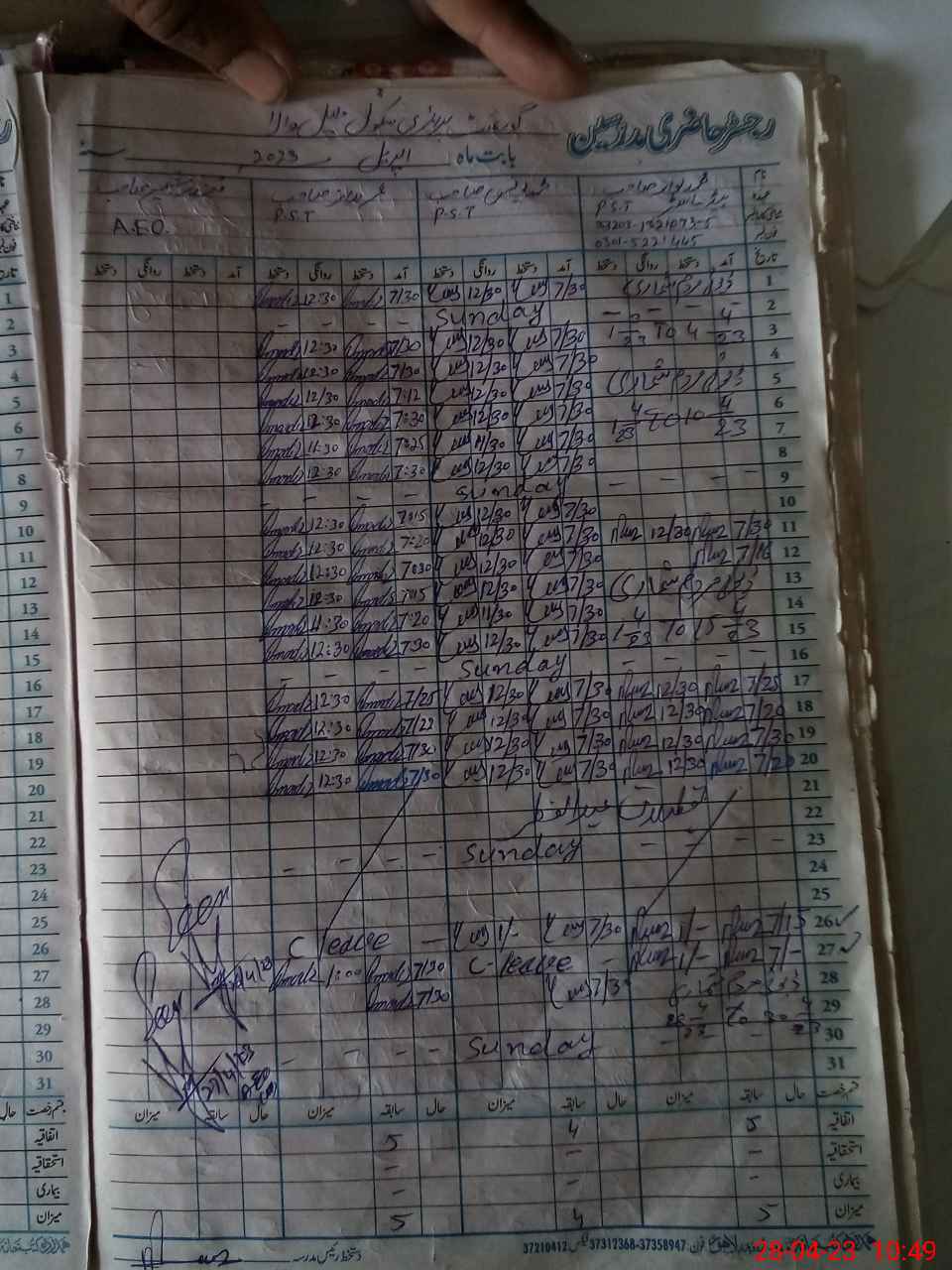 | Name: MU**** NA**** Designation: (School Headmaster's/Headmistress's) PST Phone/Cell Number: 03**** |