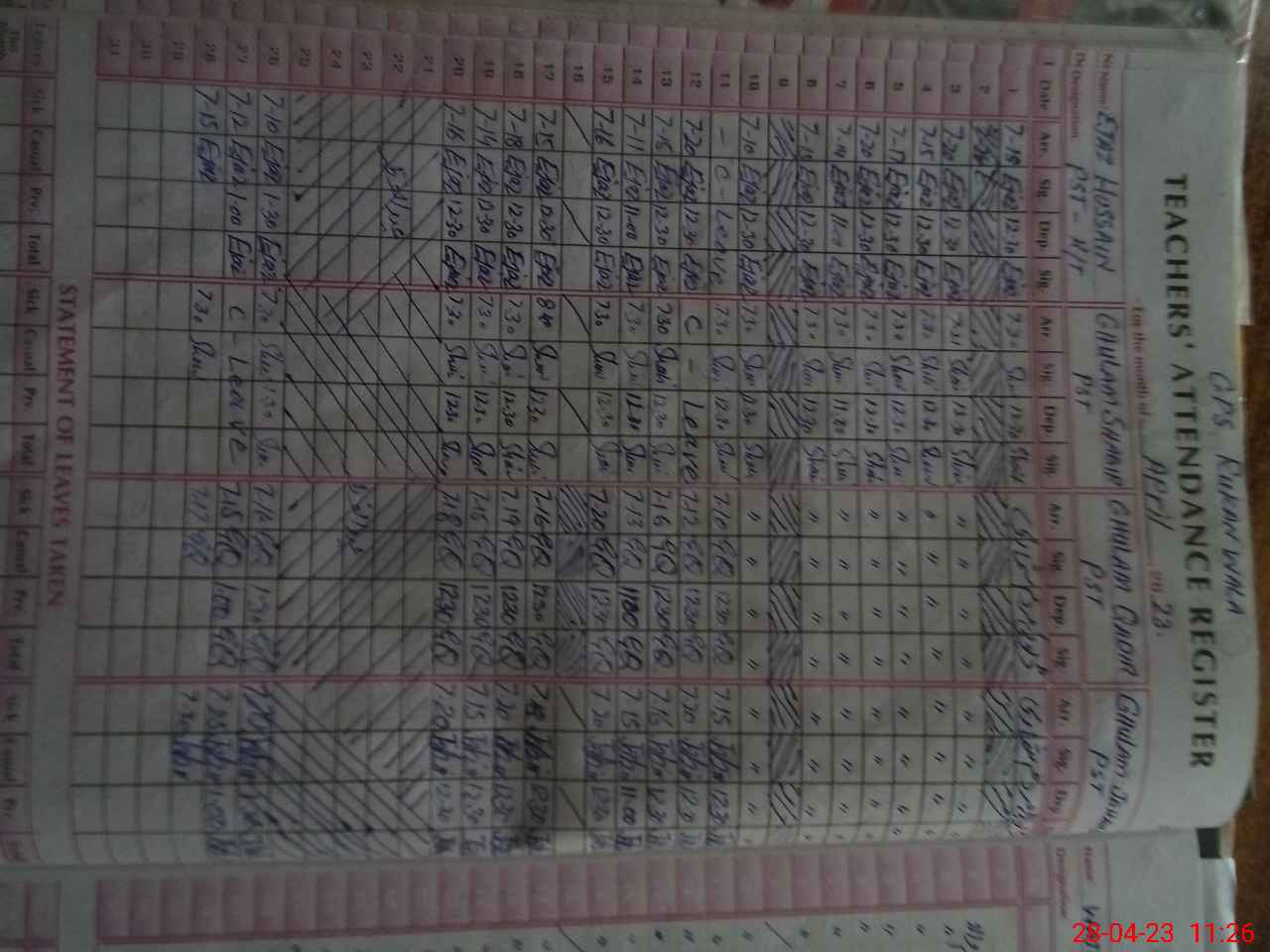 | CNIC | Full Name | Designation | R/C | Absence During Last Calender Month |
