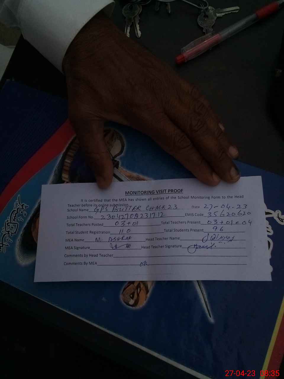 | EMIS Code: 35620620 | Name of School: GPS BUTTER NO. 23 | |||