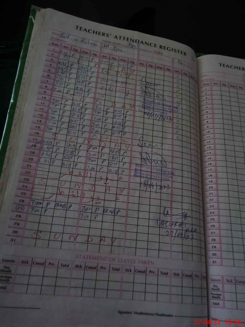 | Name: ME**** AR**** Designation: (School Headmaster's/Headmistress's) S.S.T. GENERAL Phone/Cell Number: 03**** |