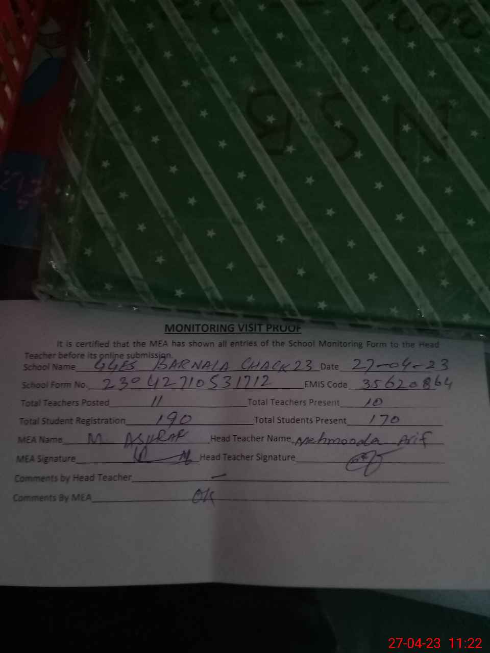 | EMIS Code: 35620864 | Name of School: GGES BARNALA CHAK 23 RB | |||
