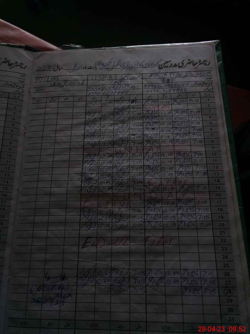 | Name: NA**** AK**** Designation: (School Headmaster's/Headmistress's) PST Phone/Cell Number: 03**** |